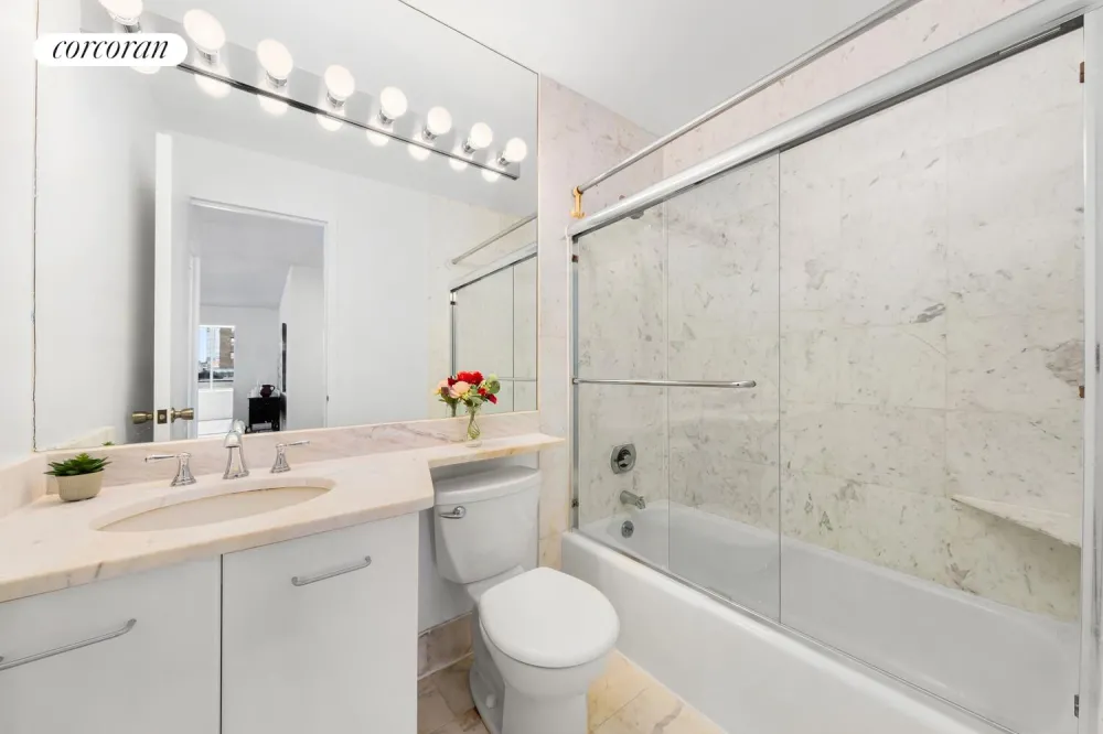 also ha Second bath features a marble tile shower with sliding glass doors and stone top vanity sink. There are several closets in the hallways including a walk-in closet just opposite the 2nd bedroom.
