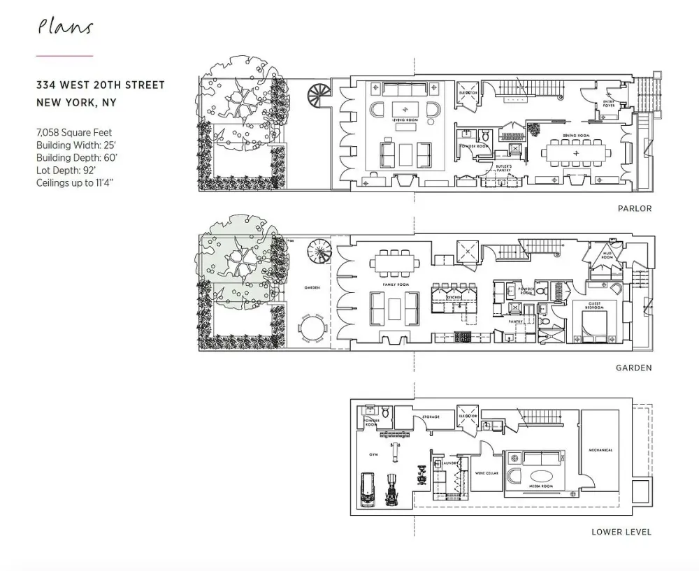 The result of a years-long renovation helmed by AD100 firm Gachot Studios, 334 West 20th Street is an impeccably renovated single family townhouse situated within the Chelsea Historic District. This 25-foot wide Greek Revival masterpiece spans 7,058 square feet across five levels, with three separate... See more