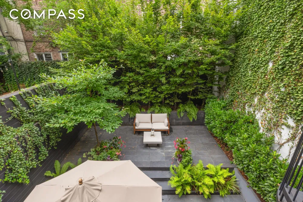 Exquisite finishes greet you at the home’s parlor floor, with ceiling heights reaching over 11 feet, 5-inch wide plank select rift cut European White Oak floors in a chevron pattern, and mahogany pocket doors with unlacquered brass hardware, with custom woodwork and plaster moldings throughout. Wood-burning and gas fireplaces clad with Imperial Danby marble mantels and Absolute Black granite hearths are found in the dining room and living room, respectively, with a stunning mahogany-clad butler’s pantry offering seamless entertaining possibilities with an electronic dumbwaiter and adjacent powder room. The living room’s triple French doors open to a balcony and staircase descending to the garden with lush mature plantings.