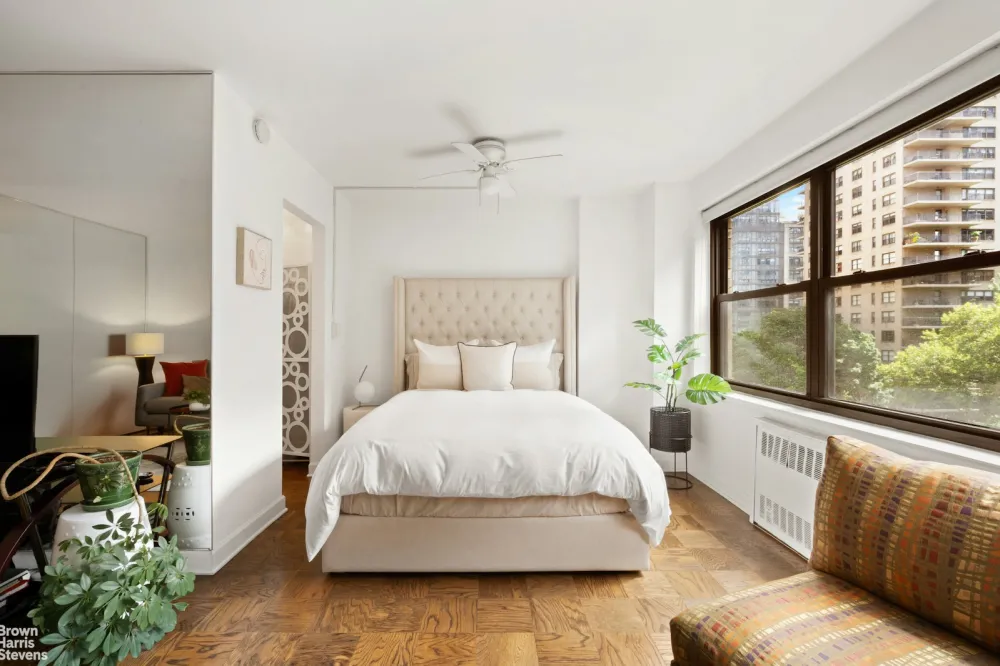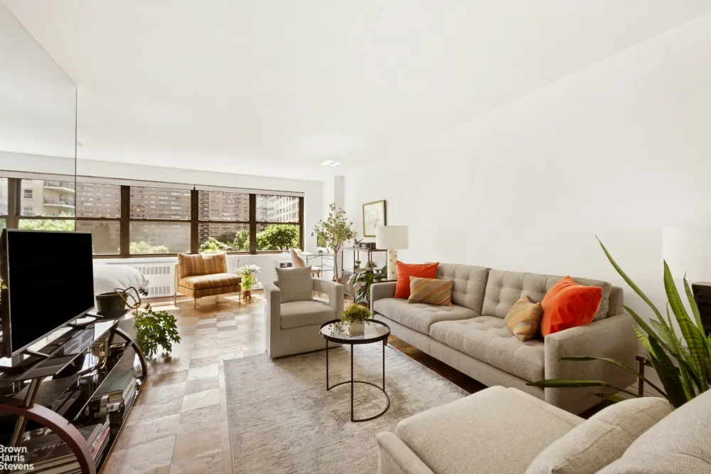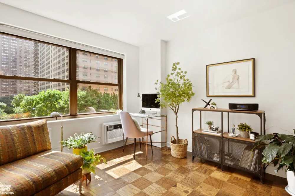 This generously sized, sun-drenched alcove studio is perched on the 6th floor of the highly sought-after Lincoln Towers complex. A wall of four oversized east- facing windows bathes the home in natural light and offers tranquil views of treetops, manicured gardens, and open city skyline that twinkles at night.