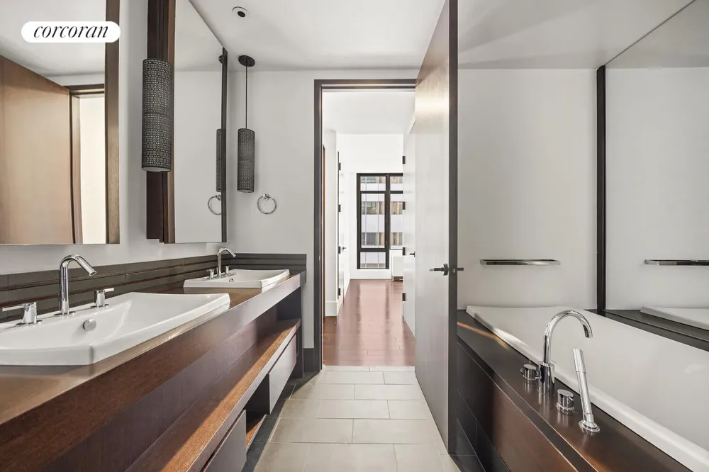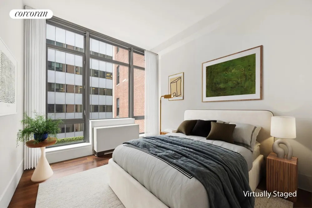 Ample closet space throughout the apartment provides excellent storage solutions, combining practicality with design. Additional highlights include a Bosch washer/dryer and high-end contemporary finishes throughout.
