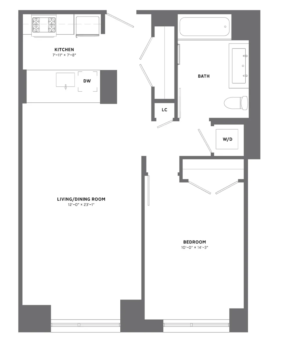 South facing loft-like 1BR with high ceilings available at The Adeline with over 14yrs left on the tax abatement! Unit 4H is the most desired one bedroom layout in the building with generous closet space and an expansive open 23" long living/dining room that gets direct sun all day long from the oversized windows.