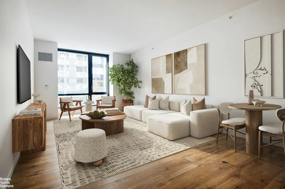 inviting lobby is ready to greet residents and lead into a light-filled landscaped courtyard. There is no shortage of outdoor areas at The Adeline, take your pick from the landscaped second-floor courtyard, which offers 5,500 square feet of sun-filled space or enjoy the 2,300 square foot roof deck with Central Park and city views. The lounge, playroom, and gym are windowed into one another so you can work out while keeping an eye on the playroom. In the basement there is a laundry room with large capacity washers and dryers, bike storage, homeowner storage room and direct access to the parking garage. Perfectly located in South Harlem, the Adeline offers easy access to all major subways on 116th and is a short walk to three wonderful city parks: Morningside Park, Marcus Garvey Park and Central Park.