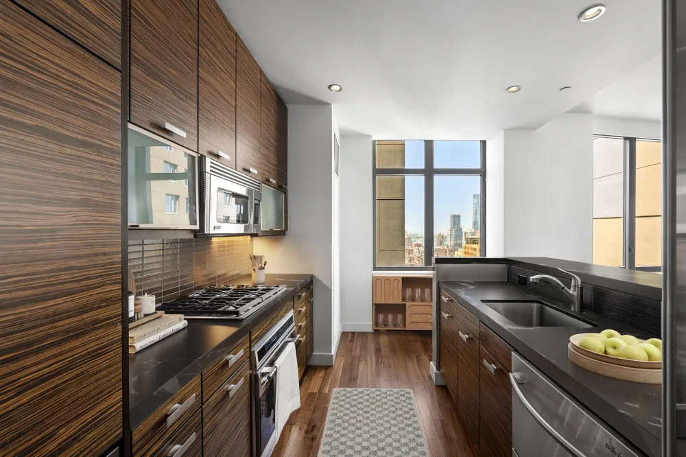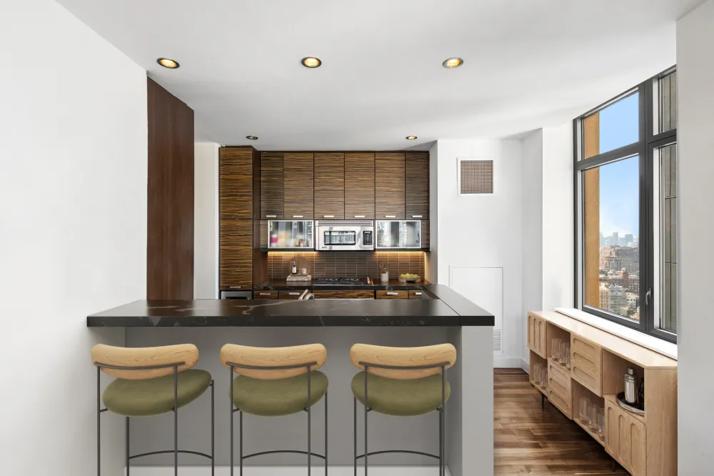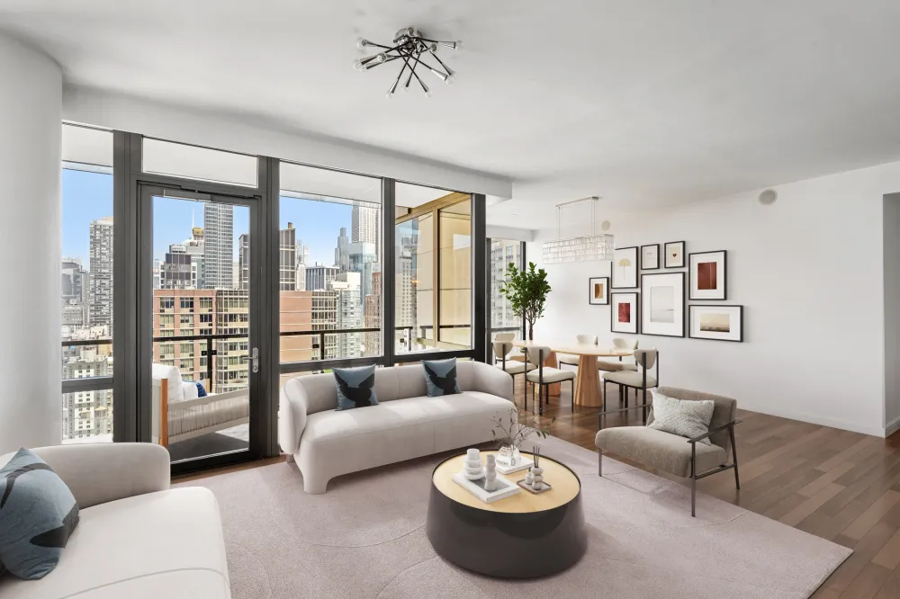 Soaring high above the city on the 33rd floor, Residence 33A at Chelsea Stratus offers a spectacular 1,555 SF corner layout with 2 bedrooms, 2.5 bathrooms, and a private balcony. This rare offering features nearly 10-foot ceilings and dramatic floor-to-ceiling windows, showcasing sweeping north and west exposures with iconic vistas of the Empire State Building, dazzling sunsets, and Hudson River views from both the balcony and living room. The expansive 20' x 25' living and dining area is perfectly proportioned for both grand entertaining and everyday living, bathed in natural light throughout the day. A windowed chef’s kitchen is fitted with Subzero, Wolf, Viking, and Fisher & Paykel appliances, a Subzero wine fridge, custom cabinetry, and sleek stone countertops. The tranquil primary suite boasts seven closets and a spa-quality five-fixture bath with double vanities, a deep soaking tub, rain shower, and Grohe fixtures. A gracious secondary bedroom with en-suite bath, an elegant powder room, and Miele washer/dryer complete the residence. Chelsea Stratus is a premier full-service condominium offering a 24-hour doorman and concierge, state-of-the-art fitness center with basketball court, residents’ lounge with billiards and catering kitchen, landscaped garden with BBQ grills and dog run, and one of Manhattan’s most impressive 360° rooftop decks designed by Thomas Balsley. Perfectly positioned at 101 West 24th Street, Chelsea Stratus places you at the nexus of Chelsea, Flatiron, and NoMad. Families will appreciate the building’s proximity to Madison Square Park and Union Square Park, both offering playgrounds and year-round community events. The neighborhood is home to a mix of top-tier schools, early learning centers, and after-school programs, making it highly desirable for long-term living. Dining and shopping options are unparalleled: Eataly, Whole Foods, and Fairway Market are just steps away, along with Chelsea Market and Trader Joe’s nearby. The area is lined with some of the city’s most acclaimed restaurants, cafe´s, and bakeries, as well as boutique shops and major retail along 5th Avenue. Entertainment and cultural highlights such as the High Line, Whitney Museum, and Union Square Greenmarket are all within walking distance. Transportation could not be more convenient, with the 1, C, E, F, M, R, and W trains all close by, and easy access to the Path Train at 23rd Street for commuters. Major crosstown and downtown bus lines further enhance connectivity, ensuring effortless access to all corners of Manhattan and beyond.