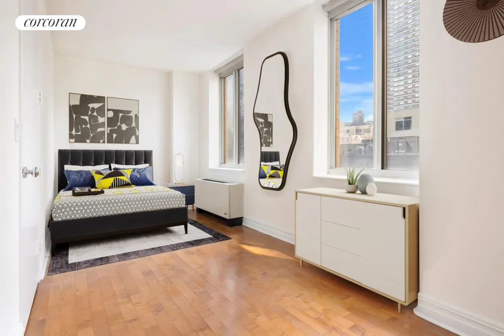 South facing Alcove Studio in full service Condominium. This turnkey Condo features beautiful wood floors throughout, a marble bathroom and a windowed kitchen that is equipped with stainless steel appliances and granite countertops. The main room boasts space for living and dining and the windowed alcove... See more
