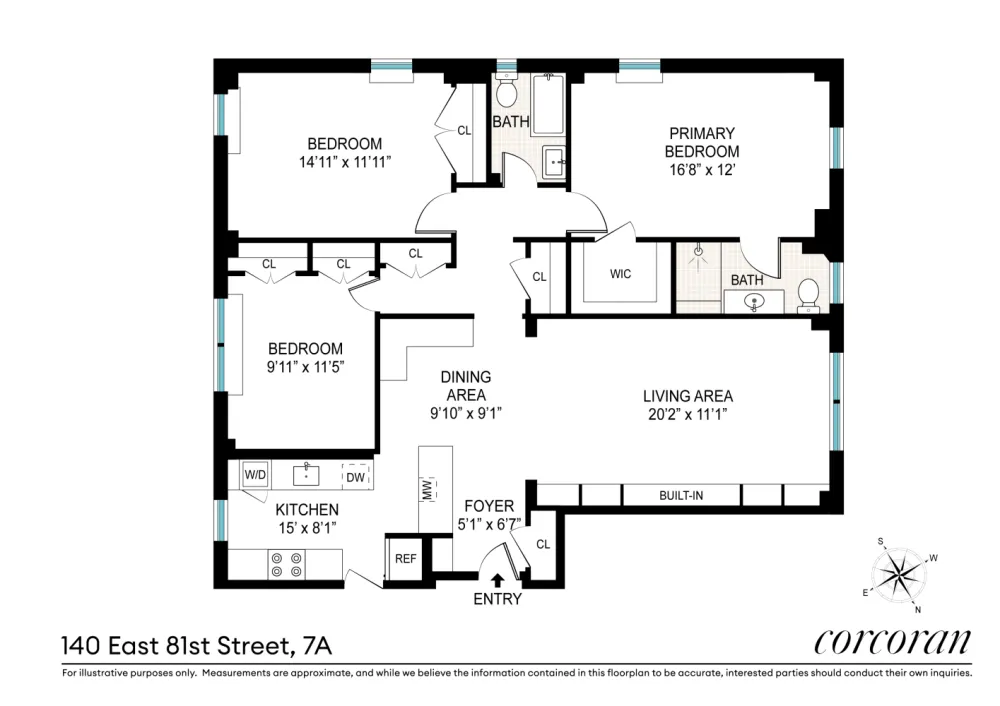 Elegant Prewar Living with Sunlight, Style Space Fully Renovated 3BR on the Upper East Side! Welcome to Apartment 7A at 140 East 81st Street a beautifully renovated, light-filled three-bedroom, two-bathroom home in the very heart of the Upper East Side. Perched on a high floor of a charming prewar... See more