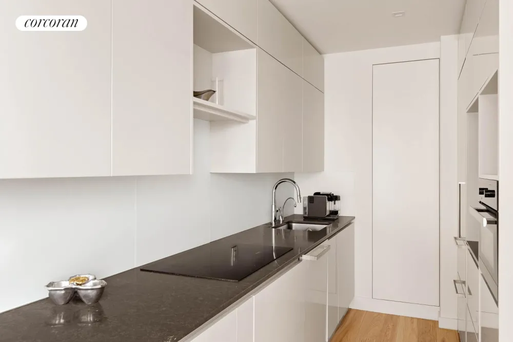 The large great room has ample space for living and dining, and offers a wraparound terrace with Northern and western exposures. The kitchen is fully outfitted by Dada and boasts Sub-Zero Refrigerator, Miele and Bosch Appliances.