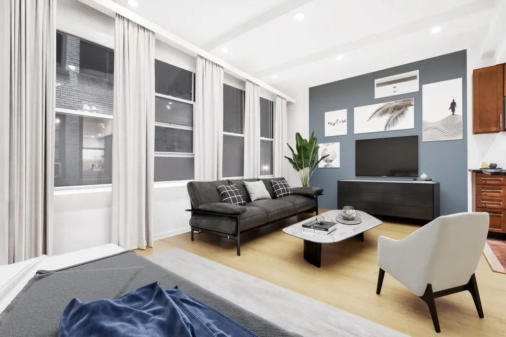 This renovated studio apartment is in a 24hr doorman, prewar coop in the heart of NoMad. The apartment is renovated and tastefully appointed. The kitchen is open to the living area and will be delivered with brand-new stainless-steel appliances (no dishwasher). The renovated bathroom sits across from a mirrored closet/dressing area. This apartment is an interior unit with no views. Recessed lighting throughout the apartment provides plenty of light. Shows very well in person, must come by to appreciate all the fantastic upgrades that make this home special. There is also a laundry room on every floor. The Madison Parq coop has 24hr doorman, full-time porters and a live-in super. There is laundry on every floor and additional storage can be rented in the basement. The recently renovated lobby and hallways will make you proud to call the Madison Parq your home. Located just one block north of Madison Square Park, this home is in the middle of NoMad with world-class shopping, dining and fitness options within steps. The N,R,6 & F trains are all nearby and the cross-town bus is just two blocks away. If all these neighborhood amenities do not impress you, how about Whole Foods at 63 Madison Ave (across the street) from the building! Photos are virtually staged, tenant in place until the end of August 2025.