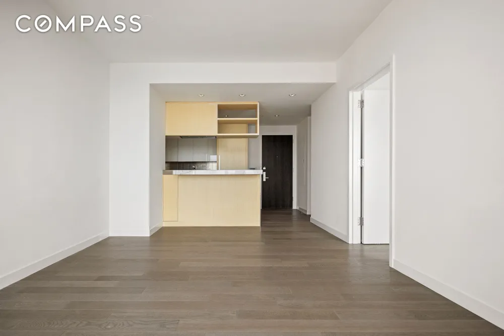 Residence 28C is a 695-square-foot one-bedroom, one-bathroom home offering spectacular southwest-facing views of the Manhattan Bridge and East River. Thoughtfully designed by the renowned Meyer Davis Studio, this elegant home features an open-concept living and dining area with a gourmet kitchen, breakfast bar, imported stone surfaces, custom cabinetry, and a premium Miele appliance package.