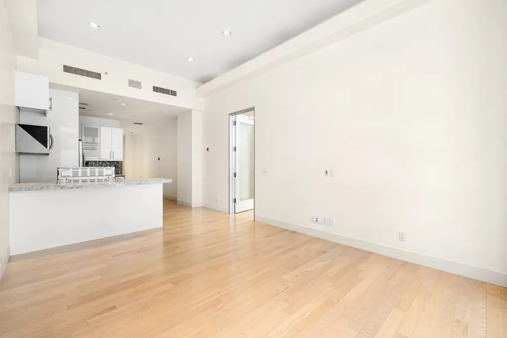 Life at The District blends style and convenience, with contemporary finishes and smart home systems. Residents enjoy a dramatic double-height lobby, 18,000 square feet of wellness facilities including a fitness center, lap pool, spa Jacuzzi, cold plunge, steam room, and sauna. The 12,000-square-foot roof deck features cabanas, a reflecting pool, and sweeping Lower Manhattan views. Additional amenities include a library lounge with fireplace, screening room, billiards room, 24-hour doorman, concierge service, cold storage, and nearby parking.