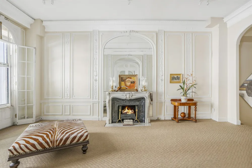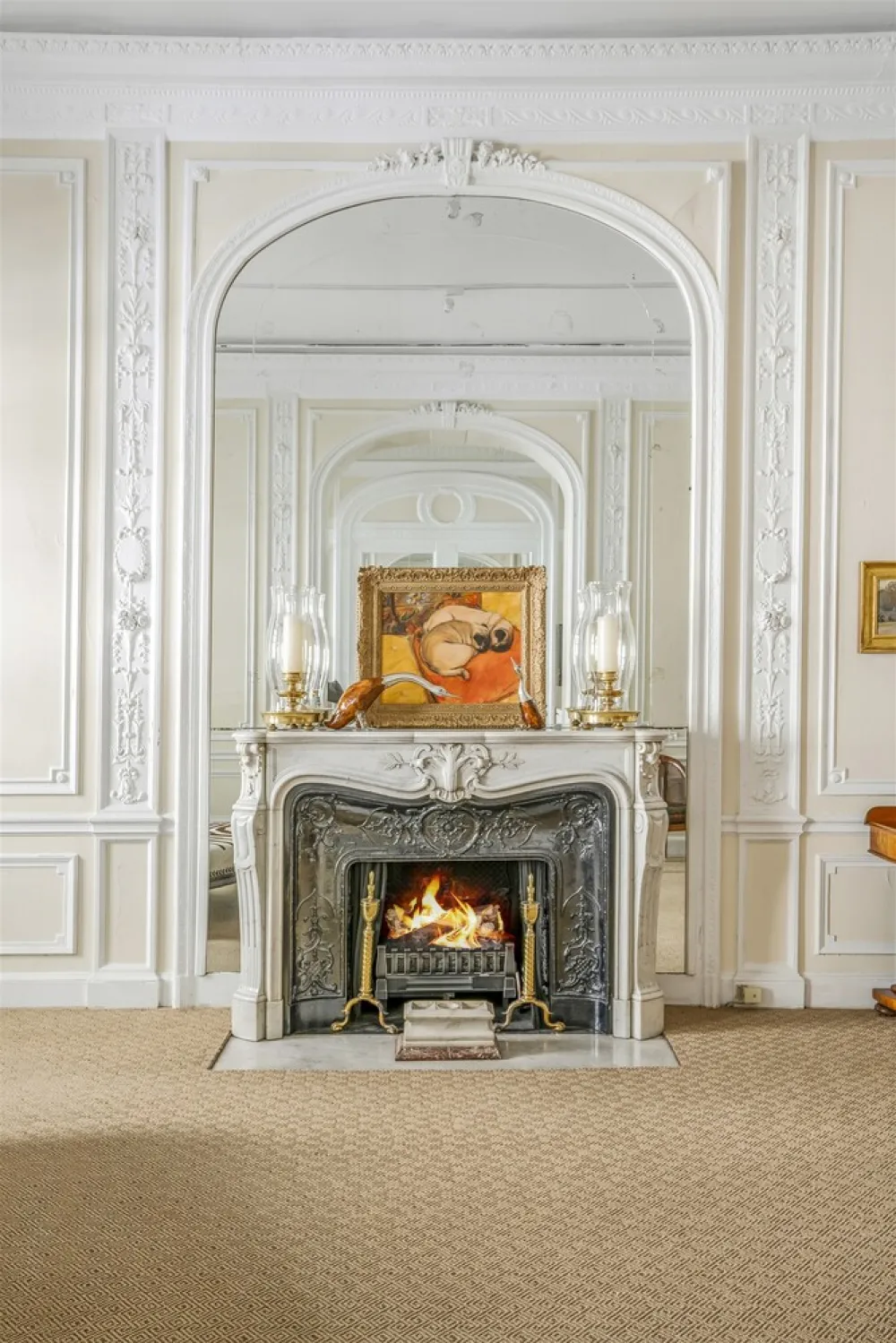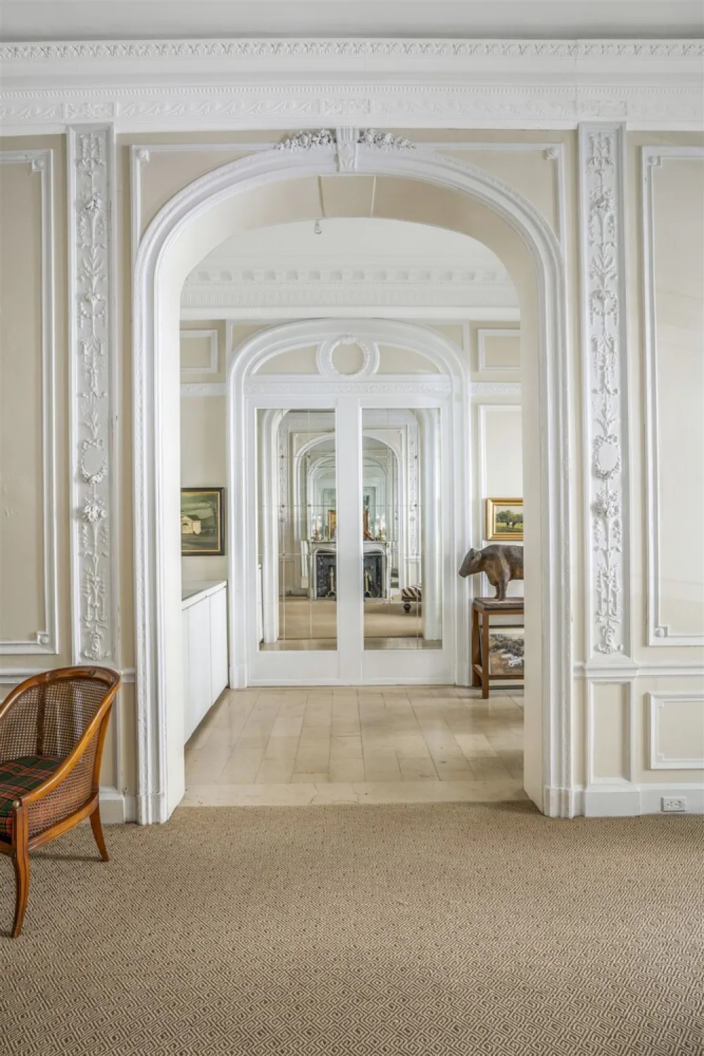 This one-of-a-kind apartment reveals a spectacular grand parlor/living room with soaring 14-foot ceilings, intricate moldings and millwork, arched doorways, and an ornate decorative fireplace that speaks to timeless craftsmanship. Adjacent is a luminous sitting room with a coffered ceiling and wet bar, offering the perfect space for intimate conversations or quiet study. Mirrors have been artfully placed to amplify natural light, ensuring the living spaces remain beautifully bright throughout the day. The tranquil primary suite, with a modern granite bath, completes the upper level.