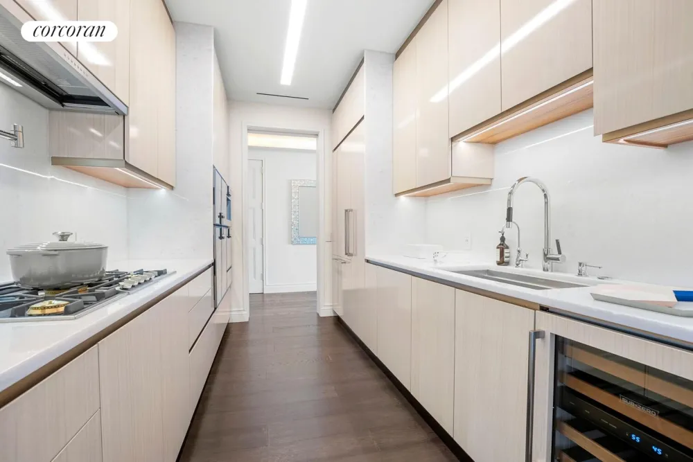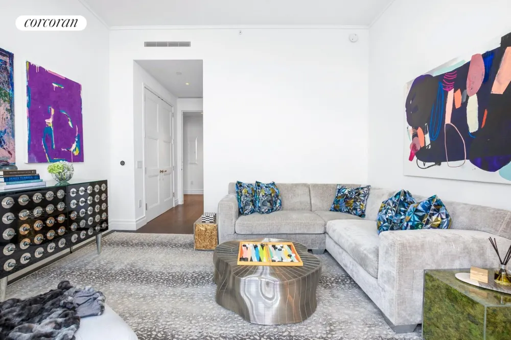 EXPERIENCE SPECTACULAR VIEWS OF THE HUDSON RIVER FROM THIS GRACIOUS CORNER TWO BEDROOM HOME. This expertly planned two bedroom residence boasts 10'10" ceilings, lavish satin finish wide plank French oak floors, and stunning views of the Hudson River from every room. The stunning kitchen has been outfitted with luxurious Smallbone of Devizes cabinetry with opal white marble counters and backsplash. Full suite of Gaggenau appliances, inclusive of a wine fridge and coffee maker, truly make this kitchen extraordinary. The corner master bedroom boasts two large walk-in closets and a luxurious windowed master bathroom which is wrapped in stunning iceberg quartzite, complete with stunning double vanity with Kinon panels, and full depth soaking tub. The second bedroom has an en-suite bath. The Washer/Dryer and handsome onyx- clad Powder Room are both conveniently located off the main hallway. No detail was overlooked in this truly exquisite home.