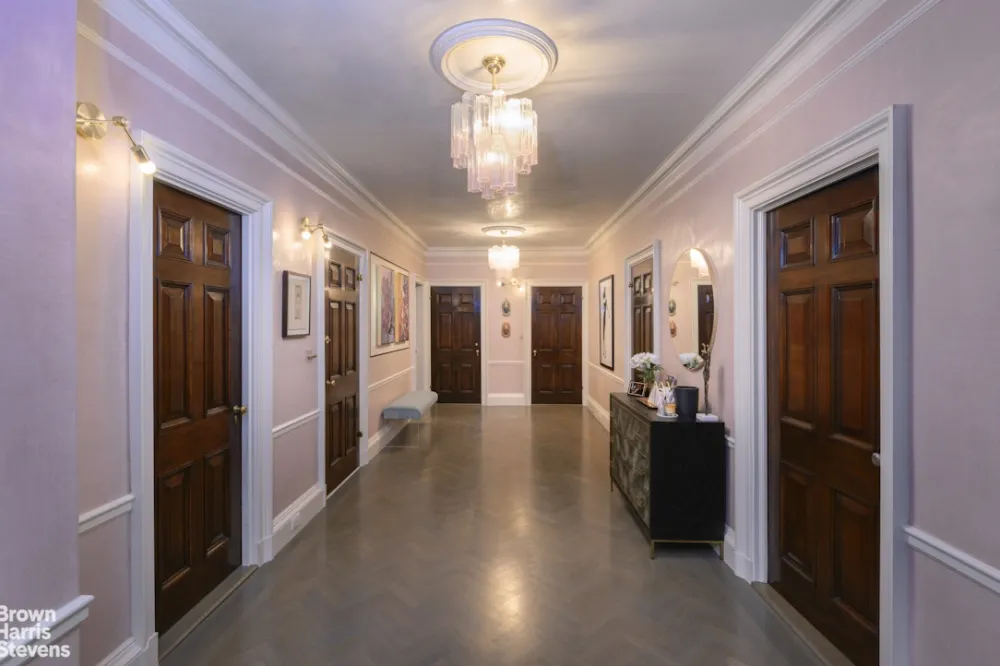A rare opportunity to move right into a newly renovated, and exquisitely decorated oversized nine into eight room apartment in one of Rosario Candela's premier white-gloved cooperatives, 1220 Park Ave. With all major rooms facing east onto Park Avenue, and generously scaled rooms throughout, the A line is one of the best in the building. 9A has recently undergone a meticulous and stunning renovation. The apartment features new air-conditioning, new thermal and UV windows, and top of the line audio/visual systems throughout. A private elevator vestibule with a black and white marble floor opens to a dramatically massive 28-foot entrance gallery with restored solid six-paneled mahogany doors, brass bullet hinges and knobs, herringbone floors, cedar coat closet, and lovely crown and base moldings. The oversized thirty-foot living room has multiple spaces for entertaining, new sixteen paned windows facing east onto Park Avenue, and a wood burning fireplace. The third bedroom, also grand in scale, is off the gallery, and used as a library, with deep peacock blue custom lacquered walls and access to a newly installed marble bathroom facing Park Avenue. The second bedroom is generously scaled, has a huge walk in closet (made from four original closets) and has access to the shared marble bath. The primary suite is light-flooded, has four large closets, custom limed oak built ins with P.E. Guerin hardware, and two oversized windows facing Park Avenue. The generous primary bath is in the process of being completely renovated in Calacatta Portogallo marble with a custom double vanity, brass fittings by Waterworks, a large soaking tub, separate glass shower and linen closet. The formal dining room is stunning, with ample seating for grand entertaining. The kitchen would thrill any chef, with a 48 inch Wolf range top with simmer plate, a vented, 48 inch hood, a 48 inch Sub Zero refrigerator, an 18 inch Sub Zero wine refrigerator, 24 inch Sub Zero refrigerator drawers, built in 30 inch Wolf wall oven, microwave and warming drawer. There is a comfortable eat in area, a fabulous pantry with custom built ins and utility sink, marble counters, and custom lighting. Off the kitchen, the original three maid's rooms have been converted into a huge laundry room with front loading, vented Whirlpool washer and dryer and utility shelving, a large home office with custom cabinets and desks, a large and gracious full marble bathroom, and a cozy guest suite or maid's room.