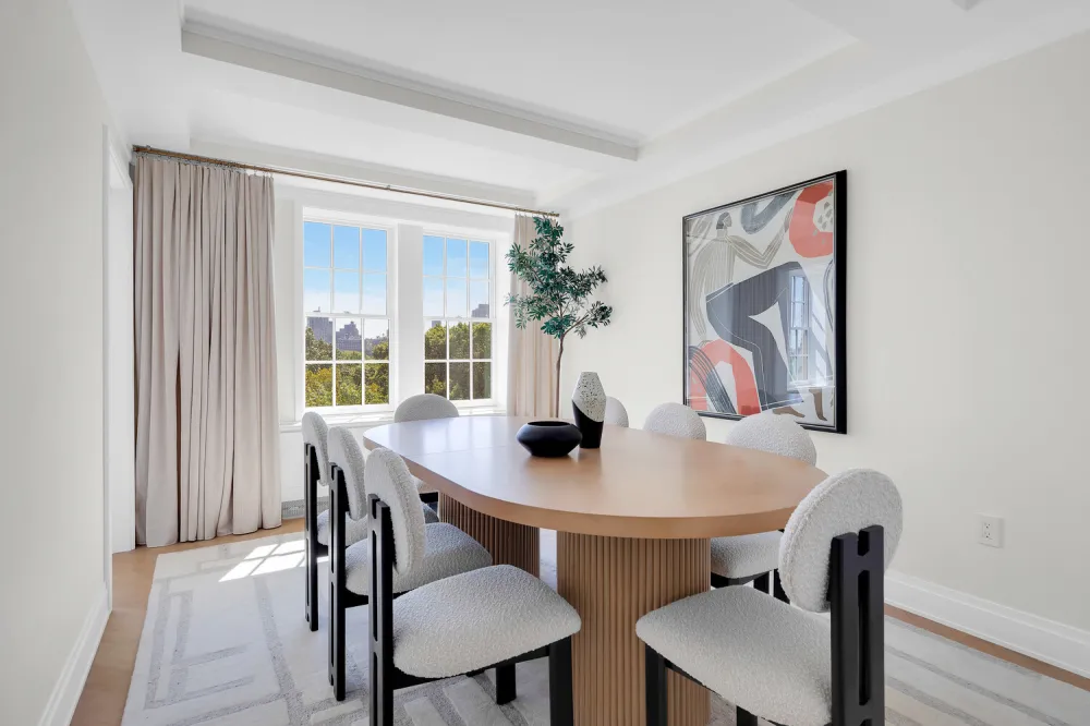 Bathed in natural light from northern and eastern exposures, the home enjoys sweeping panoramas of Central Park and the city skyline.