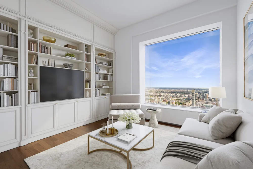 Perfectly perched above Manhattan, Residence 72A at 432 Park Avenue offers the ideal vantage point within one of the world's most iconic residential towers. From a private elevator vestibule, 72A spans 4,019 ft2, including a nearly 30x30 ft great room, 3 bedrooms, 4.5 bathrooms, and a separate library.