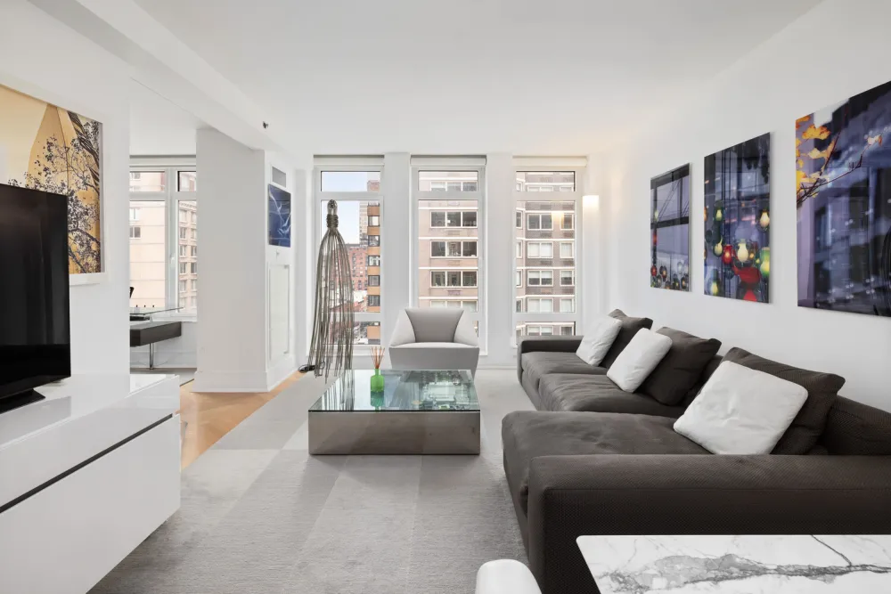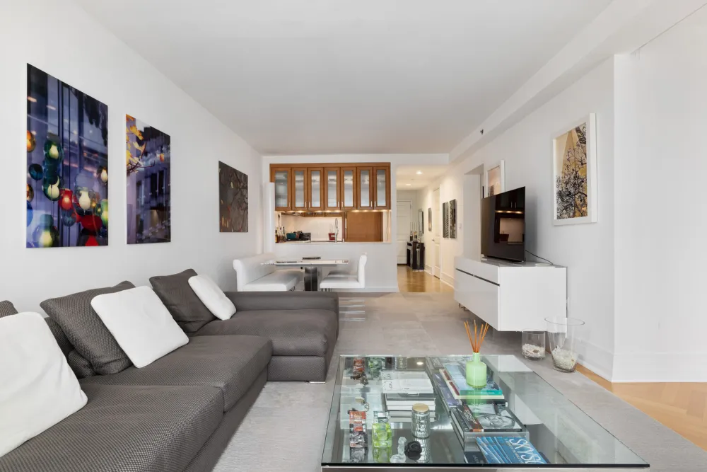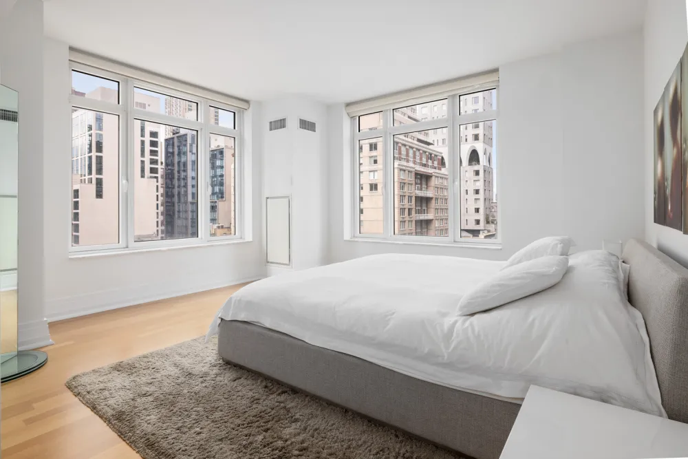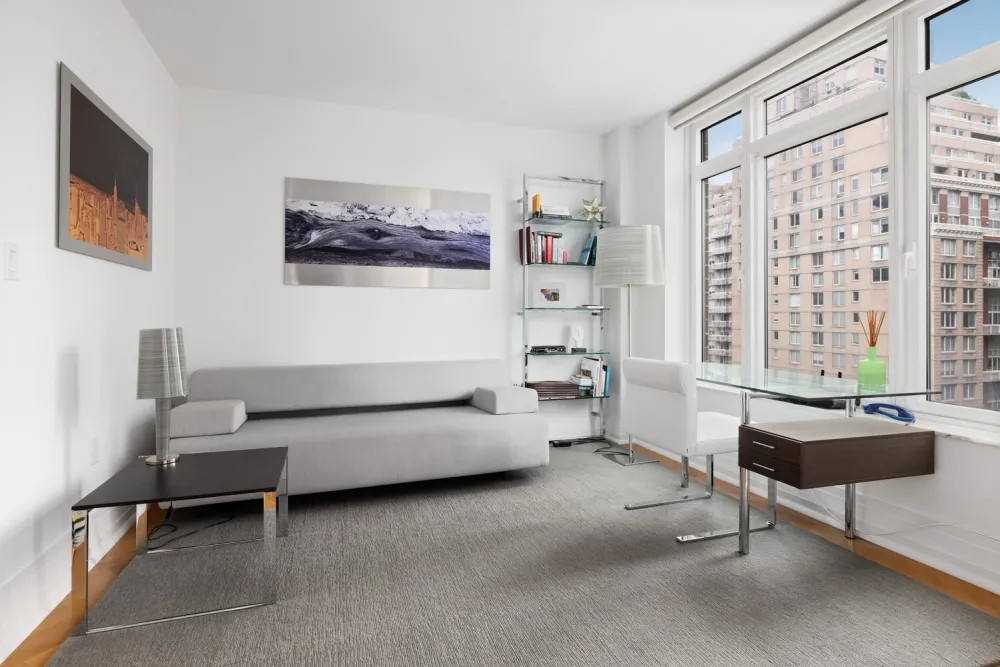 This northwest corner unit features 1347 SF, oversized windows throughout affording excellent natural light and stunning open city views, including a glimpse of Central Park.