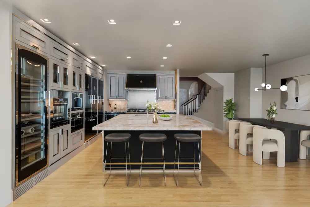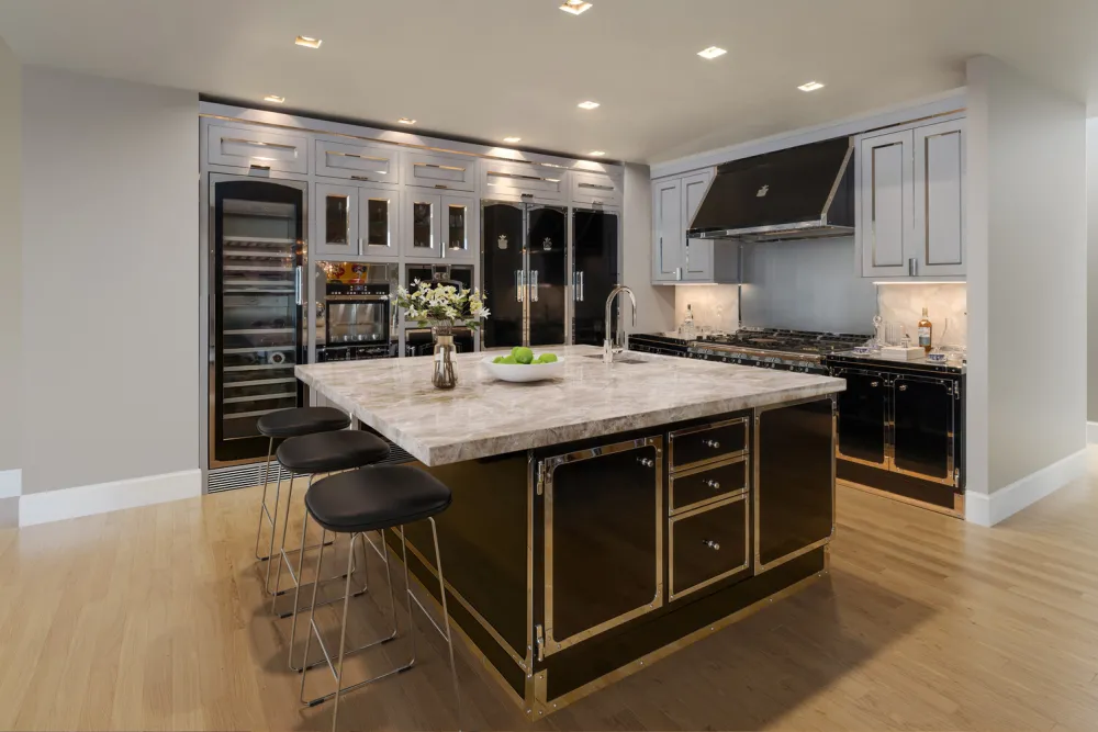 At the heart of the home is a custom-built Officine Gullo kitchen, handcrafted in Florence and valued at over $1 million - a true collector's centerpiece. Anchored by an 8-burner Gullo range and paired with top-of-the-line appliances, this kitchen is a professional chef's dream and a design statement in itself.
