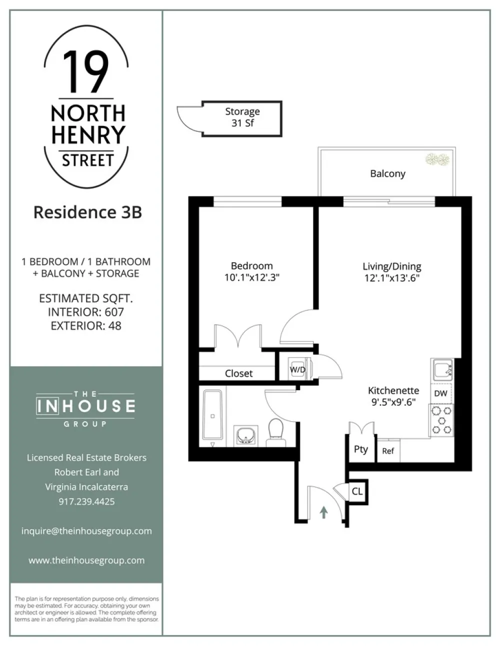 Residence 3B at 19 North Henry - a brand-new one-bedroom home with a private balcony and private storage.