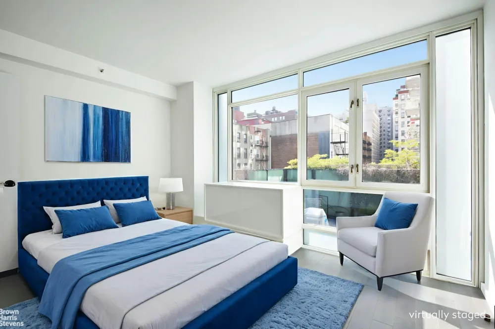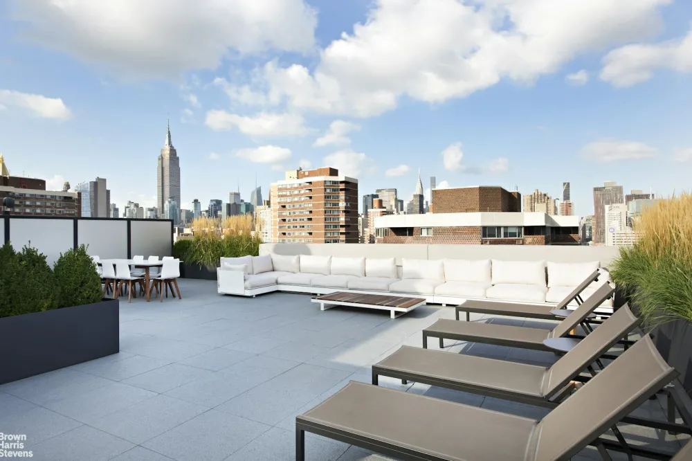 The building offers a full suite of amenities, including a 24-hour doorman, live-in super, private landscaped terrace, resident lounge, fitness center and a large, landscaped roof terrace with panoramic views.