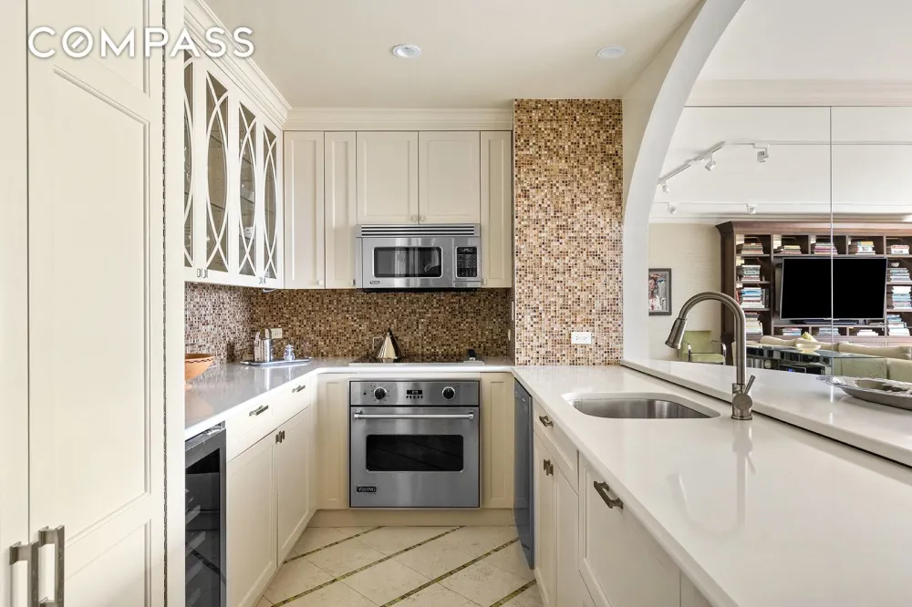 Enjoy stunning, south-facing views of the iconic Empire State building and New York City skyline, as well as a fantastic layout in this generously sized 1 bedroom, 1.5 bathroom home. There is glorious sunlight shining through the expansive floor-to-ceiling windows by day and a magical evening view of the lit up skyline by night. The grand entryway leads to the extra wide living room where there is plenty of room for dining, lounging and a home office. The well-designed kitchen has been opened to the living room, allowing for counter seating. It is well equipped with Sub-Zero fridge and freezer drawers, a Viking oven and stovetop, a wine cooler and great storage. The bedroom suite is an absolute dream. It provides the luxury of space with plenty of room for a seating or desk area. There are custom closets throughout as well as a dressing area with a lovely mirrored vanity. The primary bathroom is beautifully renovated with a spacious walk-in shower and fantastic stonework. This special apartment also has the convenience of a separate half bathroom for guests, a washer/dryer and custom curtains and shades. Olympic Tower is one of the premier full–service condominiums in New York City. The staff goes above and beyond with concierge services, privacy and security. Additional amenities include a park view gym, bike room and an additional laundry room. Centrally located, Olympic Tower is across the street from Rockefeller Center and St. Patrick’s Cathedral. Nearby you will find fine dining, some of the best shopping the city offers, museums, the theater district and multiple transportation options. Dogs are not allowed and there is a 1% flip tax to the buyer.