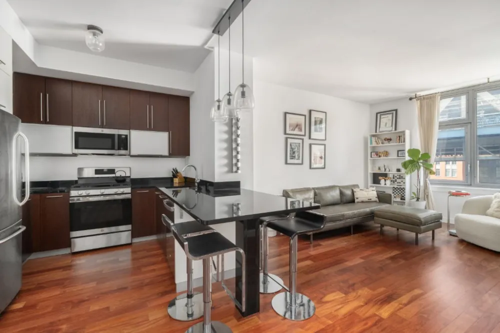 Unit 7K Modern One-Bedroom in DUMBOSpacious and stylish, this one-bedroom unit at J Condo sits in one of DUMBOs premier luxury buildings.The bright home features an open living/dining area with oversized windows, hardwood floors, and a sleek open kitchen with stainless steel appliances, granite countertops,... See more