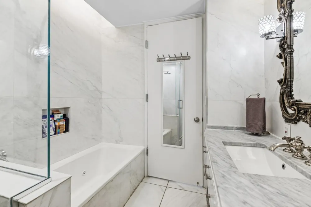 Brand nеw lіsting. Ꮮаrgе onе bedrοom one bath. Fully renovated wіth Pοrcelanosa tiles throughout the apartment. The open kitchen has marble countertops, custom KraftMaid cabinets, Wolf oven, Sub-Zero Fridge/Freezer, Bosch dishwasher. Bathroom is Porcelanosa tile, Restoration Hardware vanity and faucets, custom shower enclosure, Water Works shower and more. New AC units with custom grills. The building is called "The Promenade" and it is a luxurious full-service CONDO with 24 hour concierge, garage, doormen, porters, handymen, live-in super, playroom, roof garden, outdoor jogging track, roof top business/conference room, storage rooms, maid and dry cleaning services, bicycle room and a very big party room on the top floor (with its stunning river views and its own kitchen & bathroom) that is available for residents" private parties. Common charges include your use of the fully renovated health club and gym, top floor heated swimming pool, saunas, steam rooms, massage rooms, fitness & meditation classes. Steps away from John Jay Park. Current assessment of $241 per month.