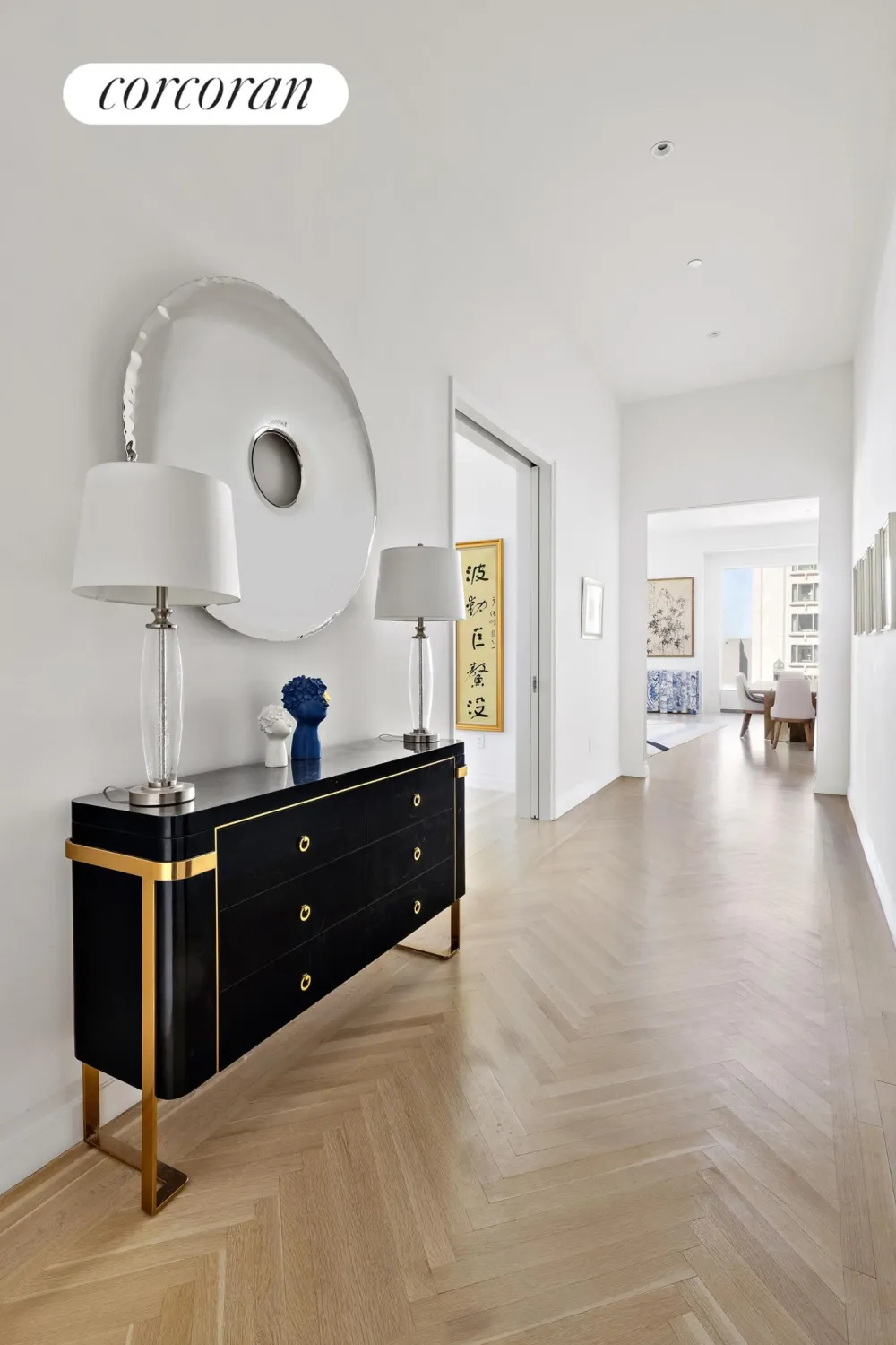 A library/den is located off of the foyer with city views across Madison Avenue, followed by an impressive gallery that separates this residence's entertaining and private spaces into two private and separate wings.