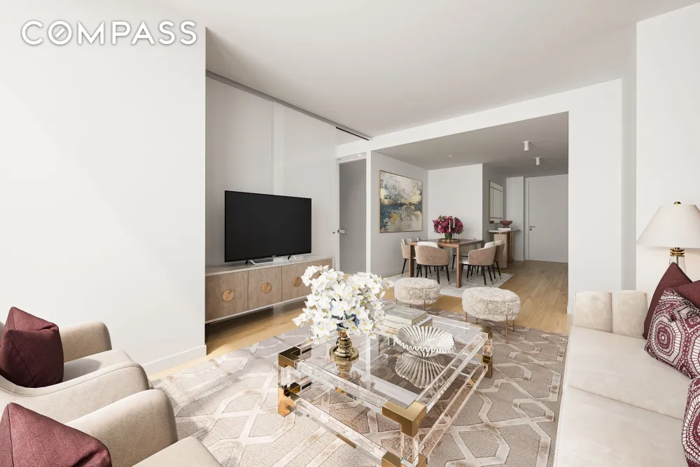 Residence 506S at 540 West 49th Street is a one-of-a-kind one-bedroom, one-bathroom home that redefines contemporary urban living. Customized by a renowned designer, this fifth-floor apartment stands apart from every other unit in the building—featuring a striking translucent glass wall with a sliding... See more