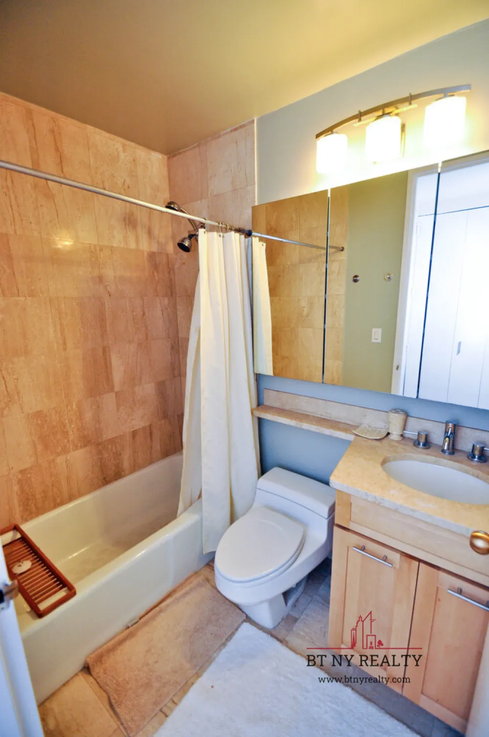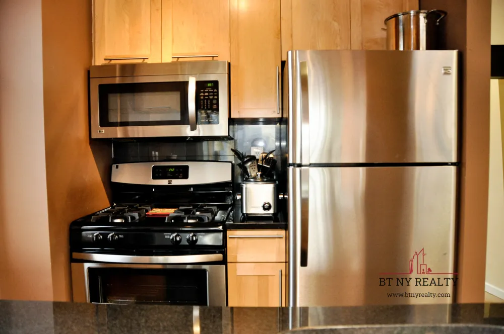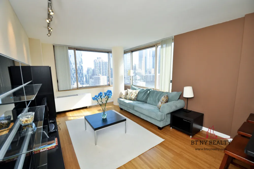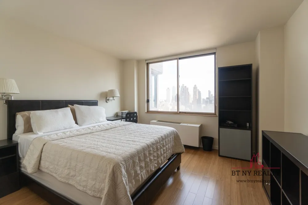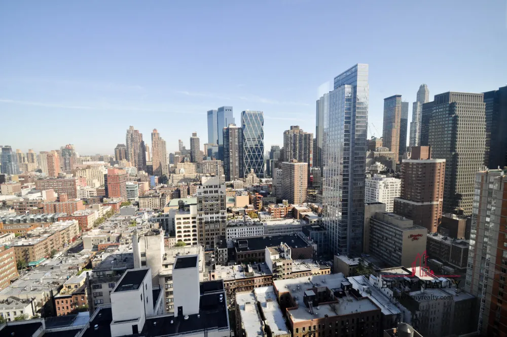 Wake up every day to jaw-dropping, panoramic views of New York City's legendary skyline-stretching from the Hudson River to Times Square-from this stunning, sun-drenched luxury one-bedroom home. Perched high above the city, this beautifully renovated 603 sq ft residence is an urban oasis in the sky. The open-concept living room and primary bedroom are framed by over-sized windows that flood the space with natural light and put the skyline on full display-day or night, the city is your backdrop. Inside, you'll find sleek plank bamboo floors, three spacious closets, and a thoughtfully designed layout that maximizes both comfort and function. The modern windowed kitchen is outfitted with stainless steel appliances-including a dishwasher, stove, microwave, and refrigerator-along with rich cabinetry and elegant black granite countertops, perfect for both everyday cooking and entertaining. The spa-inspired marble bathroom adds a touch of luxury, while abundant closet space ensures you'll never be short on storage. Whether you're unwinding after a long day, entertaining guests with the city lights as your backdrop, or simply enjoying a quiet morning with coffee and a view, this home delivers a truly elevated New York lifestyle.