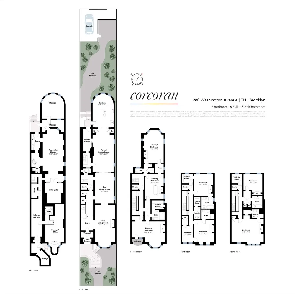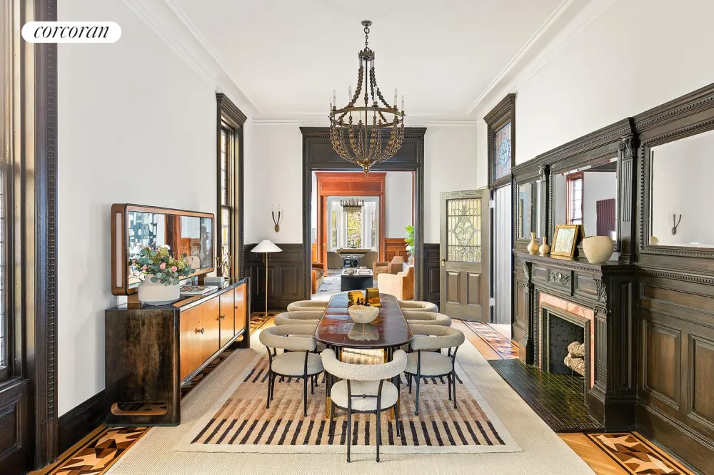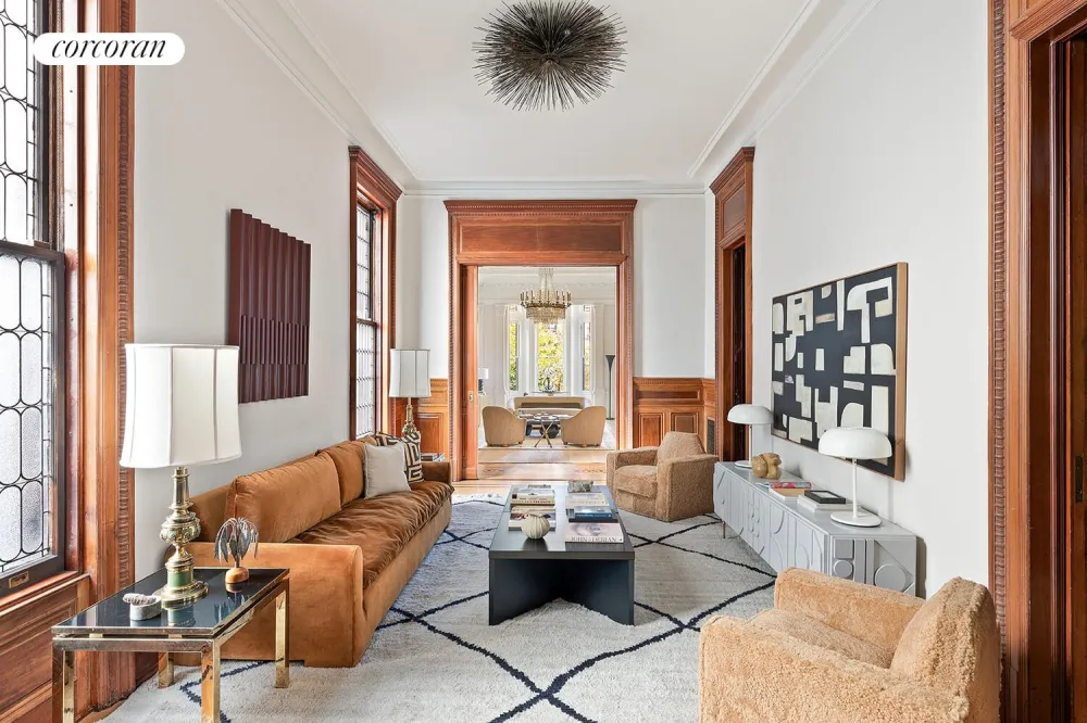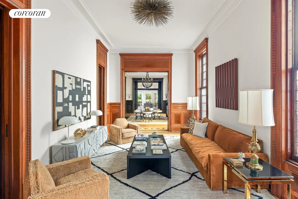 - 105 FT deep parlor floor with soaring ceilings, formal living room, sitting room, dining room and eat-in chefs' kitchen complete with Subzero, Asko & Viking appliances