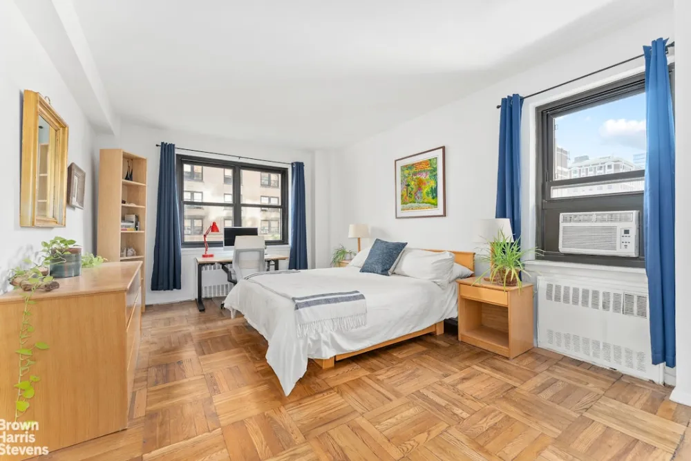 Basking in eastern and southern light, this spacious two bedroom one bathroom home offers attractive city views and cheerful bright light all day. There's a SUNNY window in EVERY room! A gracious entry foyer lined with closets welcomes you to this lovely home and from there the entire home is in reach. Walk straight through to the generous living room which offers plenty of room for dining, lounging and entertaining. A short hallway off the foyer offers extra storage or room for a desk and leads you to the king-size, corner primary bedroom which enjoys two closets, wonderful light and city views east and south. The kitchen, second bedroom and bathroom are all windowed, bright and south facing overlooking the landscaped co-op garden.