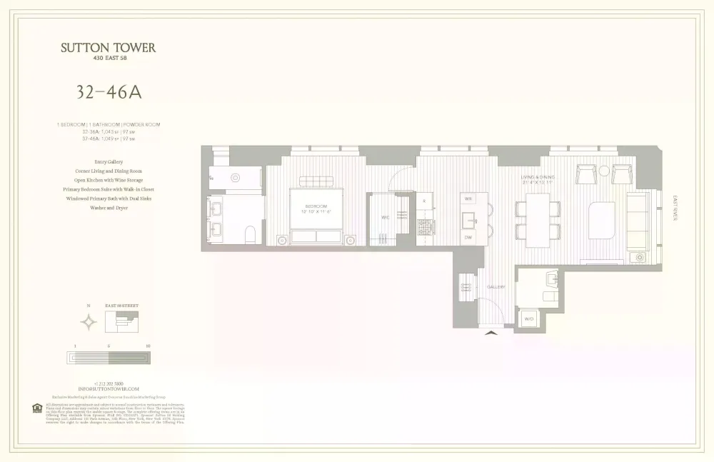 Beyond the residence, Sutton Tower reflects the elegance of New York’s rich Art Deco heritage, with its bronze-canopied entrance, double-height atrium, and serene Sculpture Garden. Residents enjoy the exclusive Sutton Club, spanning four light-filled amenity floors and offering a landscaped terrace with panoramic views, a lounge, private dining with catering kitchen, screening room, children’s playroom, indoor pool and spa, and a state-of-the-art fitness center.