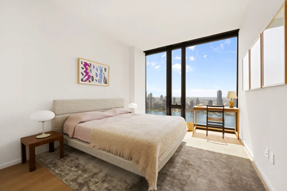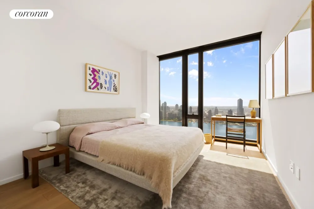 Residence 41A at One United Nations Park is a 2,900sf four bedroom, four bathroom plus powder room residence overlooking the East River. The generous layout boasts an expansive great room and open kitchen with large island. Every room is flooded with sunlight and abundant closets throughout. The primary suite features an oversized walk-in closet and spacious 5-fixture bath. Ceilings are over nine feet allowing for maximum natural light through the floor-to-ceiling windows.