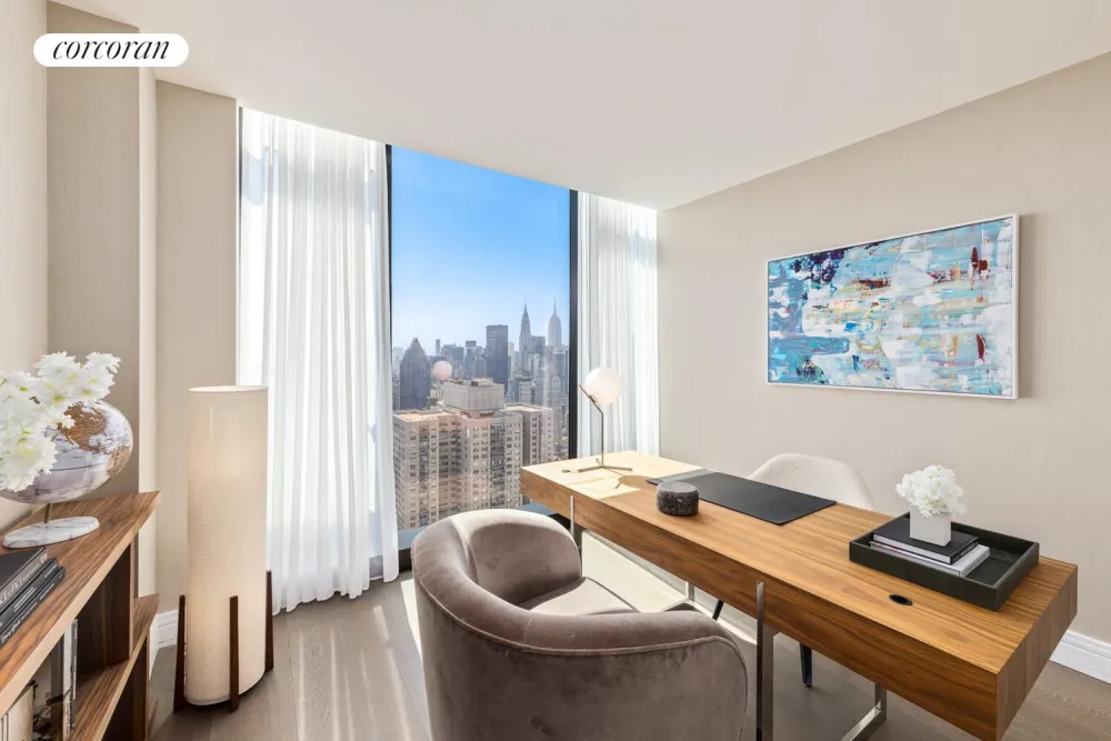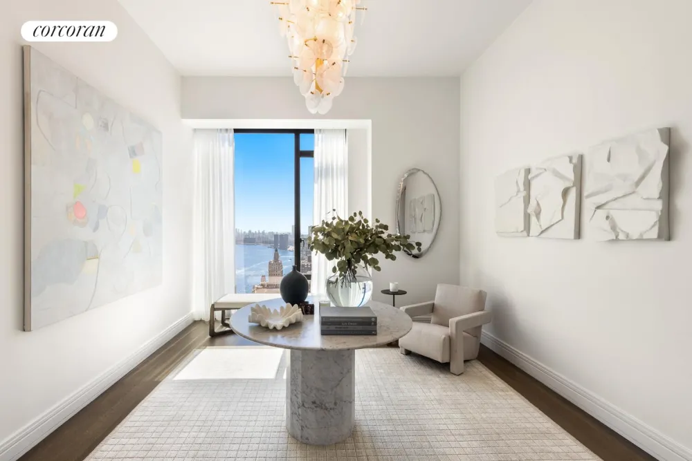 Residence 47A is a four-bedroom, three-and-a-half-bathroom residence featuring 4,765 square feet of interior space accented by southern, eastern, northern, and western exposure. Direct elevator entry leads into this expansive home, which offers unmatched views of The Empire State Building, Chrysler Building, Central Park, George Washington Bridge, and beyond. The dramatic entry gallery leads to a gracious great room that boasts southeastern exposure and floor-to-ceiling windows. A north-facing kitchen with adjacent dining room offers a Statuarietto marble island and Italian custom-crafted matte lacquer white cabinetry adorned with Sub-Zero and Wolf appliances. A formal dining room is adjacent to the kitchen and offers northeastern exposure.