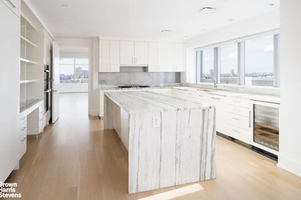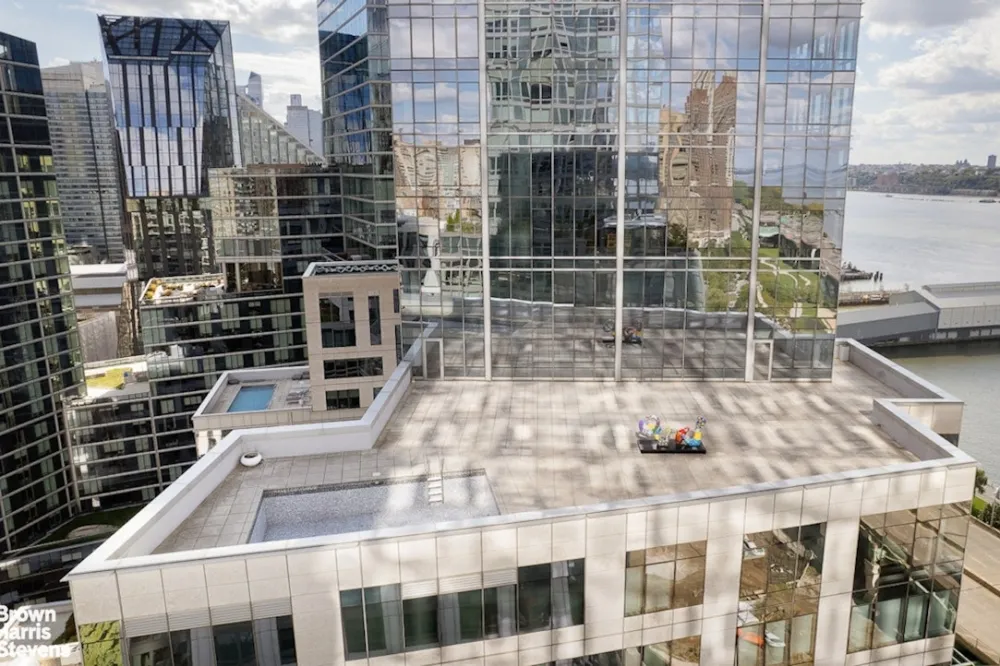 Seamlessly blending over 5,700 square feet of interior living space and a massive 4,500 square foot terrace with private pool, this extraordinary duplex corner residence at One Riverside Park offers elegant city living at its finest. Designed by Shamir Shah Design and boasting seven bedrooms and nine and a half bathrooms and with oak flooring throughout, the home offers exposures to the north, south, east, and west, with breathtaking views of the Hudson River.