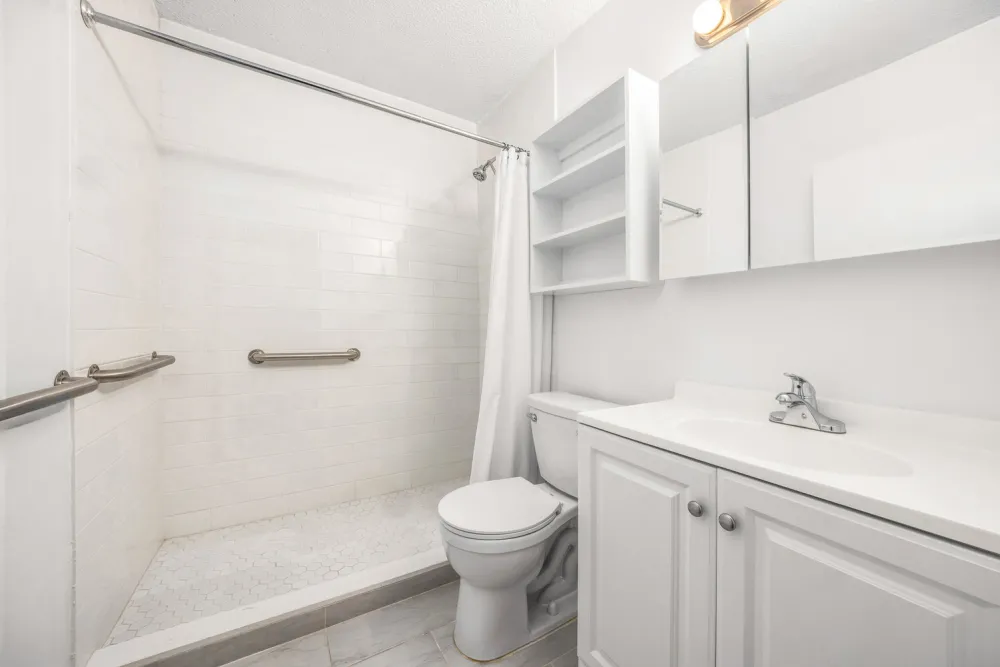 A gracious entry foyer with a coat closet and powder room leads into an expansive, sun-filled great room of impressive proportions. Currently configured with a dining alcove, the space can easily accommodate a second bedroom, den, or home office. The separate kitchen presents exciting possibilities; with board approval, it may be opened to create a seamless modern flow for entertaining and everyday living. The king-sized primary suite features an en-suite bath and abundant closet space, ensuring both comfort and privacy.