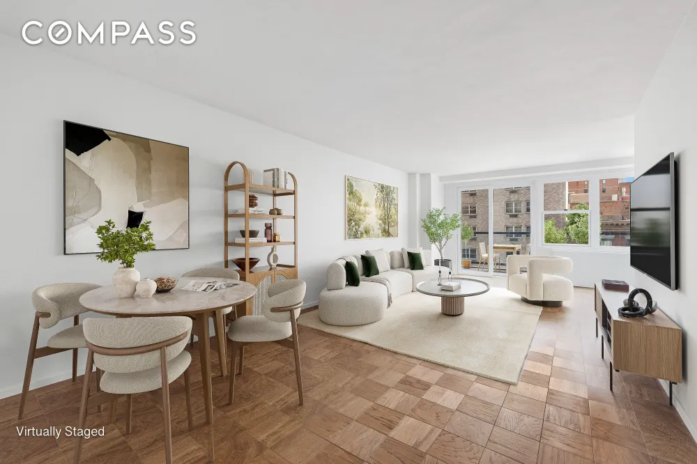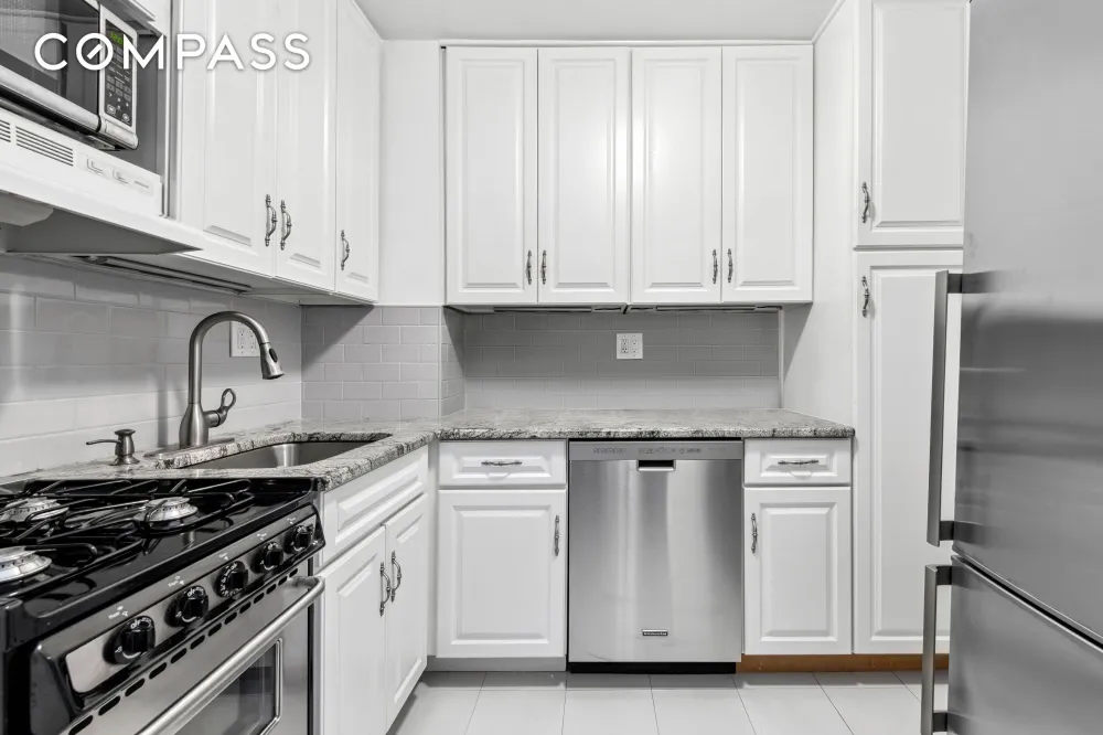 This bright and spacious alcove studio offers a rare luxury — your very own 20-foot private balcony! The sun-flooded, east-facing living room easily accommodates a dining area and home office with direct access to your oversized outdoor space — perfect for morning coffee or evening relaxation. The large sleeping alcove fits a queen-size bed and can be easily converted into a one-bedroom if desired. Additional highlights include a renovated kitchen with a dishwasher, updated bathroom, parquet hardwood floors and an abundance of closet space throughout.