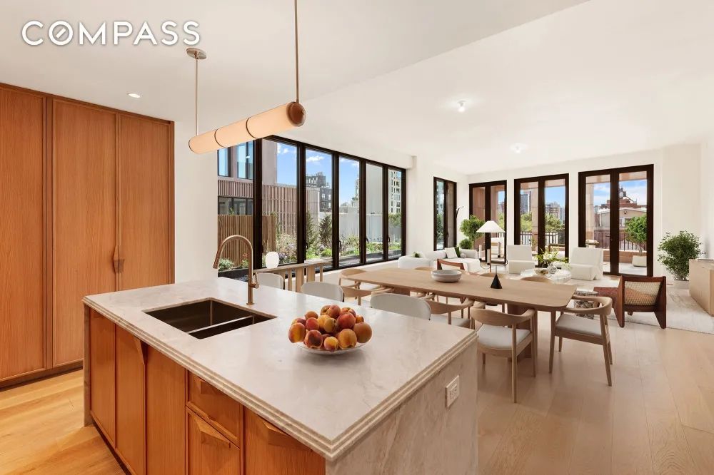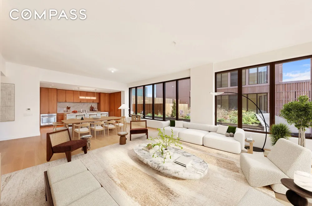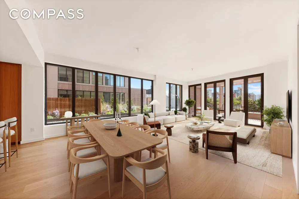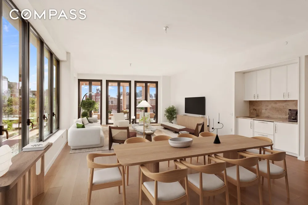 Perched above the tree-lined streets of Boerum Hill, Penthouse 601W feels less like an apartment and more like a retreat — a private resort in the heart of Brooklyn. From the moment you step through the formal foyer, sunlight filters across the space, illuminating the soaring 10’8” ceilings. The home unfolds gracefully — 2,740 square feet of effortless flow and calm — leading you toward an expansive corner great room framed by southeast light.