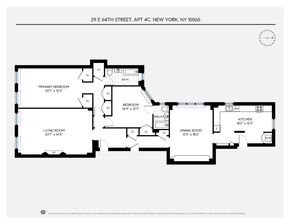 This elegant apartment is located in a landmarked white-glove building on a lovely tree-lined street, just a block from 5th Avenue. The property is beautifully decorated with spacious rooms, original wood floors, moldings, almost 10' ceilings and approximately 1,750 square feet.