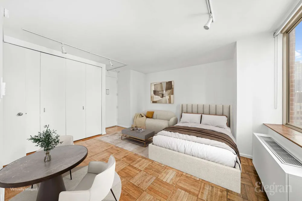 ALL SHOWINGS INCLUDING OPEN HOUSES ARE BY APPOINTMENT ONLY. Perched on the 33rd floor, this bright and thoughtfully designed studio offers breathtaking panoramic views of the city skyline and East River through two oversized windows that span nearly an entire wall. The well-proportioned layout maximizes... See more