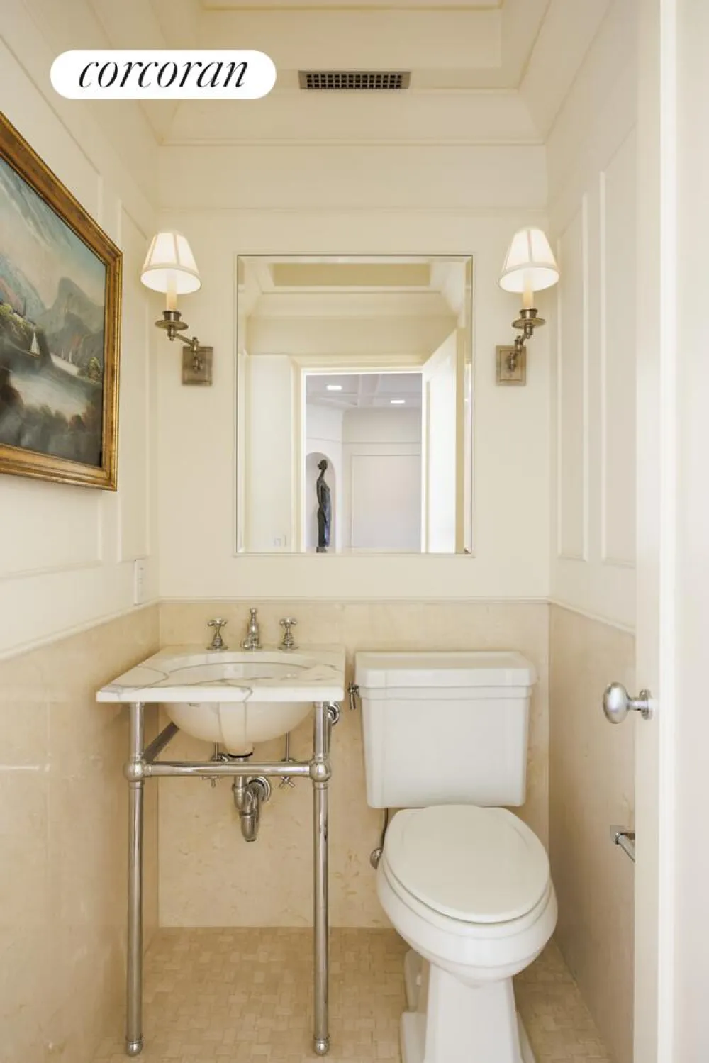 A graceful staircase leads to the private quarters above, where both bedrooms enjoy mesmerizing park views and abundant closet space. The primary suite offers a sumptuous en-suite bathroom featuring two sinks, a soaking bathtub, and a separate glass-enclosed shower-each detail enhanced by luxurious Waterworks fixtures. The second bedroom also boasts an en-suite bath with a bathtub.