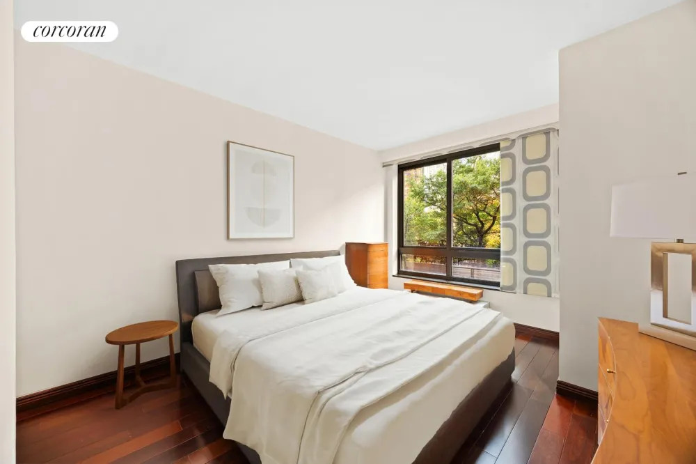 This spacious apartment measures 745 square feet and features Brazilian Cherry hardwood flooring throughout, a renovated kitchen with pass-through, generous closet and storage space as well as central heat and A/C.