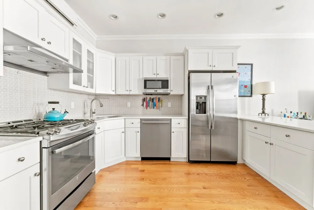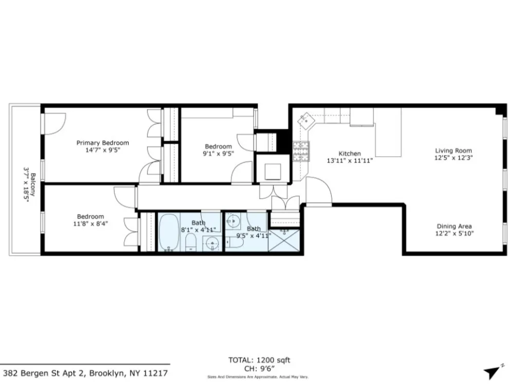 Stunning 1,200 square foot, 3-bedroom with 2 bathroom renovated apartment with low monthlies, in Park Slope, occupying the entire second floor of a 3-unit brownstone condominium. Open living space with high 9.4-foot ceilings. Hardwood floors with sun-filled windows. Large, open kitchen with counter seating and a separate dining area. The kitchen has quartz countertops, a designer backsplash, and steel GE appliances. Three spacious bedrooms. Two full bathrooms, one with a shower and the other with a tub. Also, in-unit a full LG washer and gas dryer, ductless air conditioning for quiet, energy-efficient cooling, abundant closets, plus shared open storage in the basement. The primary bedroom has a balcony.