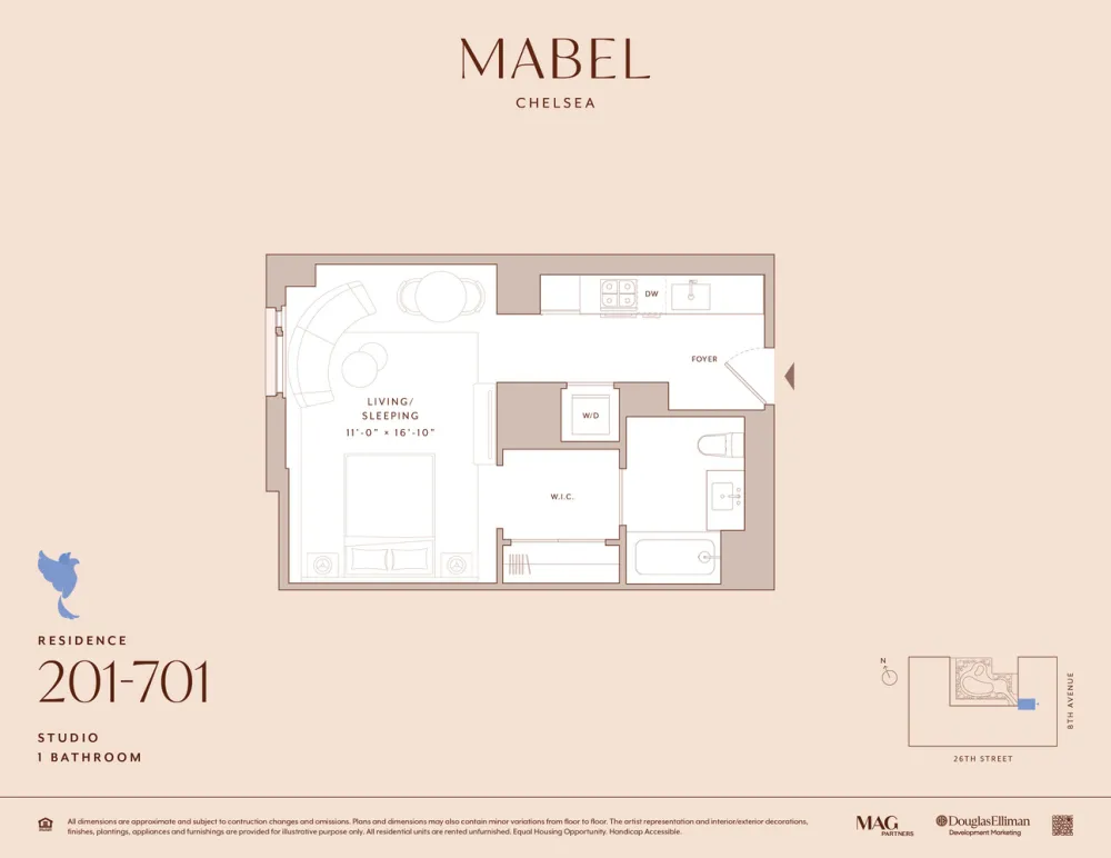 Located in the heart of Chelsea-one of Manhattan's most vibrant and eclectic neighborhoods-Mabel has been thoughtfully crafted by MAG Partners and meticulously designed by the renowned COOKFOX Architects to harmonize the tranquility and beauty of nature with the sophistication and innovation of New York City.