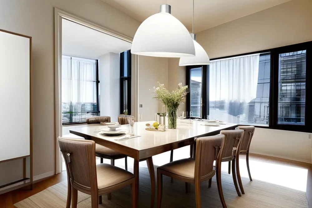 The enclosed kitchen is outfitted with pristine, never-used top-of-the-line appliances and sleek finishes, designed for both functionality and refined living. The adjacent living and dining areas flow seamlessly, creating an ideal space for entertaining or relaxing above the city.