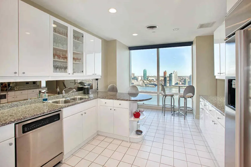 Additional features include custom closets, built-in shelving, motorized shades, luxurious marble bathrooms appointed with top-tier fixtures, an in-unit washer/dryer, and individually controlled heating and cooling for year-round comfort.