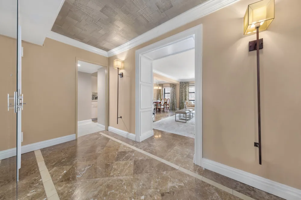 Welcome to this beautiful and fully renovated two bedroom / convertible 3-bedroom apartment with 2 full bathrooms and a private balcony, Upon entering this home, there is an elegant entry foyer with a gold leaf ceiling and a large closet with custom built-in shelves and drawers. The spacious living room is ideal for entertaining having a large separate dining alcove and plenty of space to accommodate your furnishings. There is a new extra large heating and a/c unit with remote controlled thermostat, motorized blinds, and there are elegant lighted display shelves built into the walls.