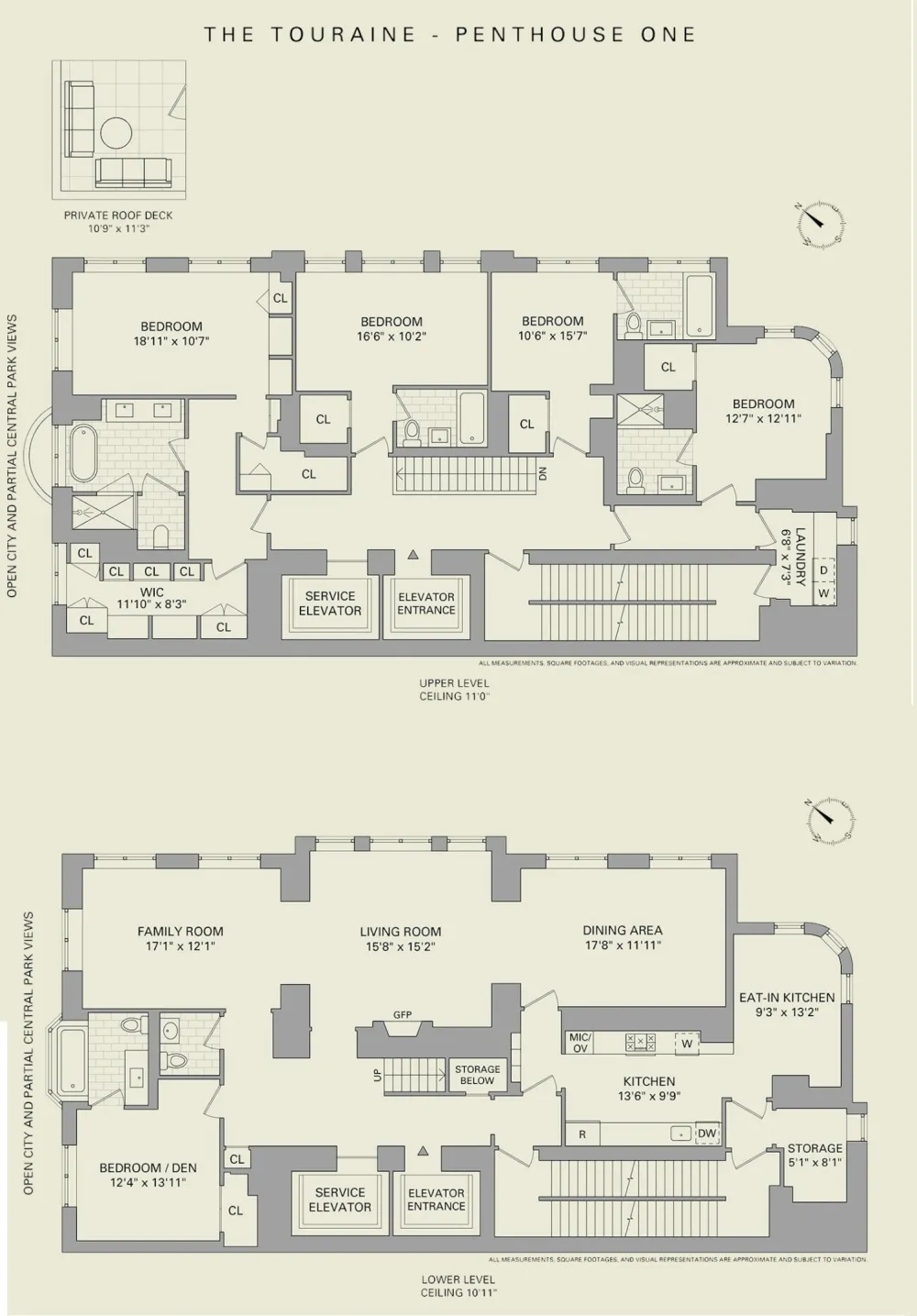 The Penthouse has its own private roof deck with stunning views of Manhattan, a private wine locker for over 100 bottles in the wine cellar, and an oversized private storage unit.