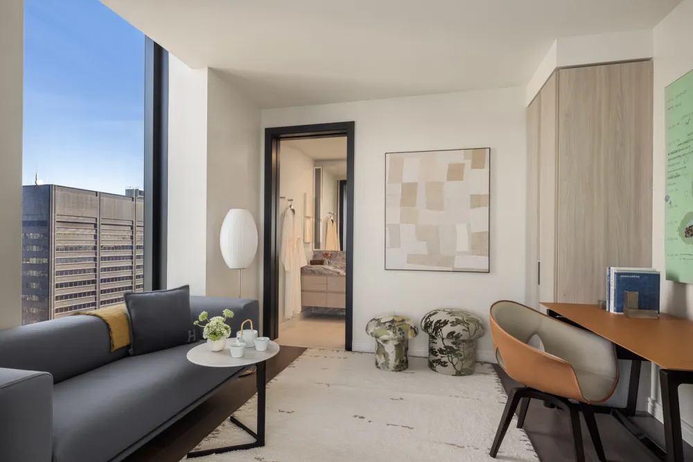 The complete offering terms are in an offering plan available from Sponsor. Sponsor: 125 Greenwich Owner LLC c/o: Fortress Investment Group LLC, 1345 Avenue of the Americas, 45th Floor New York, NY 10105. File no. CD15-0336. The artist representations and interior decorations, finishes, appliances and furnishings are provided for illustrative purposes only. All residential units are sold unfurnished. Sponsor makes no representations or warranties except as may be set forth in the offering plan. Sponsor reserves the right to substitute materials, appliances, equipment, fixtures and other construction and design details specified herein with similar materials, appliances, equipment and/or fixtures of substantially equal or better quality. All dimensions are approximate and subject to normal construction variances and tolerances. Square footage exceeds the usable floor area. Sponsor reserves the right to make changes in accordance with the terms of the offering plan. Plans and dimensions may contain minor variations from floor to floor. All dimensions and ceiling heights are approximate. Equal housing opportunity.