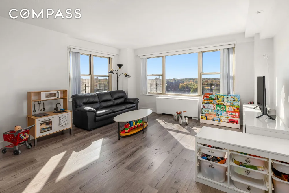 Views, Light and Space! This spacious, high floor converted 2-Bedroom, 1-Bath measures approximately 1000SF complete with a separate, windowed eat-in kitchen, an oversized living room, ample room for dining and a king-size primary bedroom. This home is bathed in sunlight and features direct south facing... See more